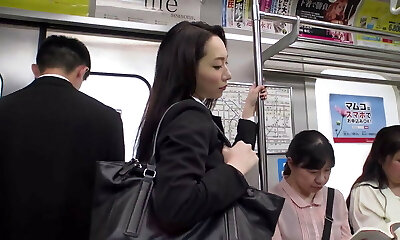 Weary chestnut haired office clerk Mami Asakura is fucked in subway train