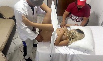 Weirdo Poses as a Gynecologist Doctor to Fuck the Beautiful Wife Next to Her Dumb Husband in an Erotic Medical Consultation