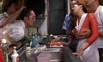 Asian housewife banged by her husband and his friends!