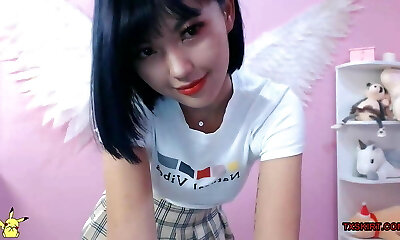 Korean Adult Camgirl Teases Perky Tits and Spreads Her Gams